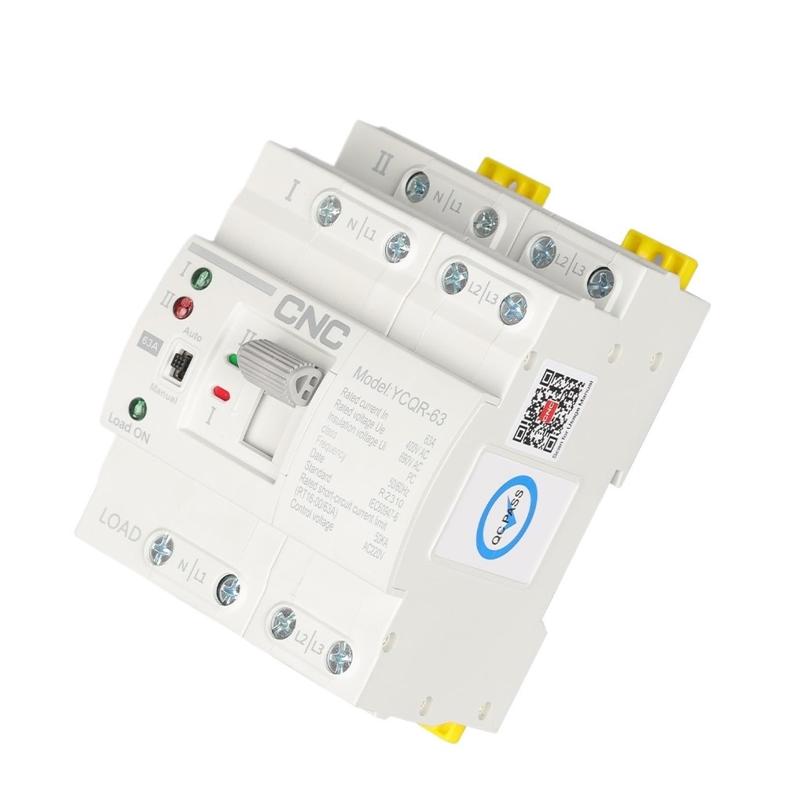 The CNC YCQR-63 4P is a high-quality 3-phase dual power automatic transfer switch (ATS) designed to provide reliable and seamless switching between power sources. With its advanced features, it ensures a continuous power supply to critical electrical systems while offering protection and convenience for both residential and commercial applications.