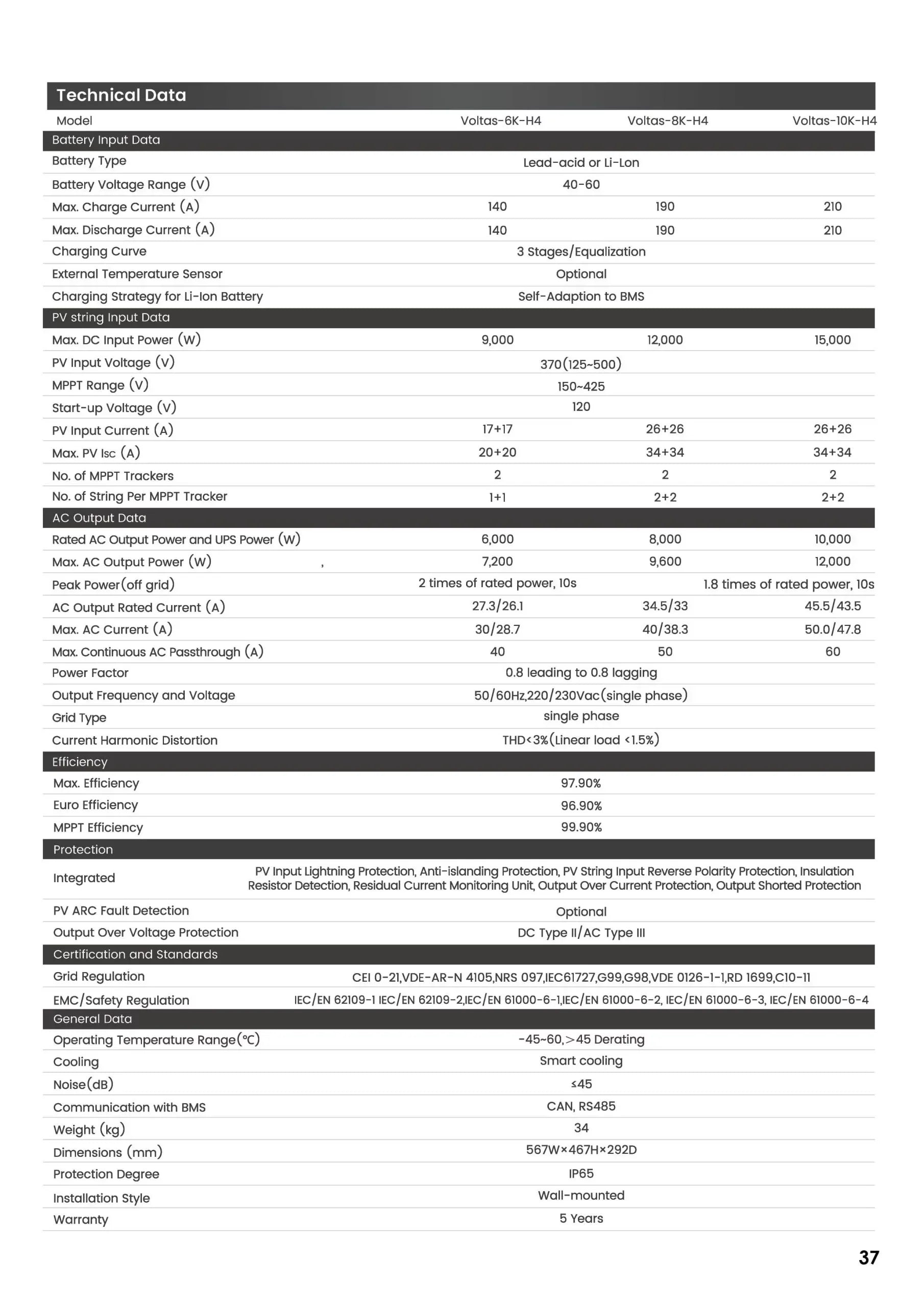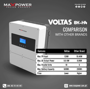 The MaxPower Voltas 8K-H4 is designed for users who need efficient energy management, robust protection, and high output in a single-phase hybrid inverter, ensuring long-term reliability and performance.