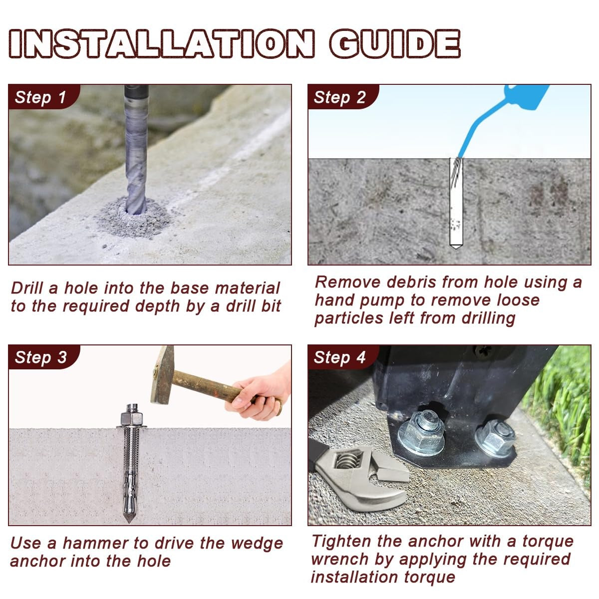 - Includes: Wedge Anchor, Flat Washer, and Hex Nut