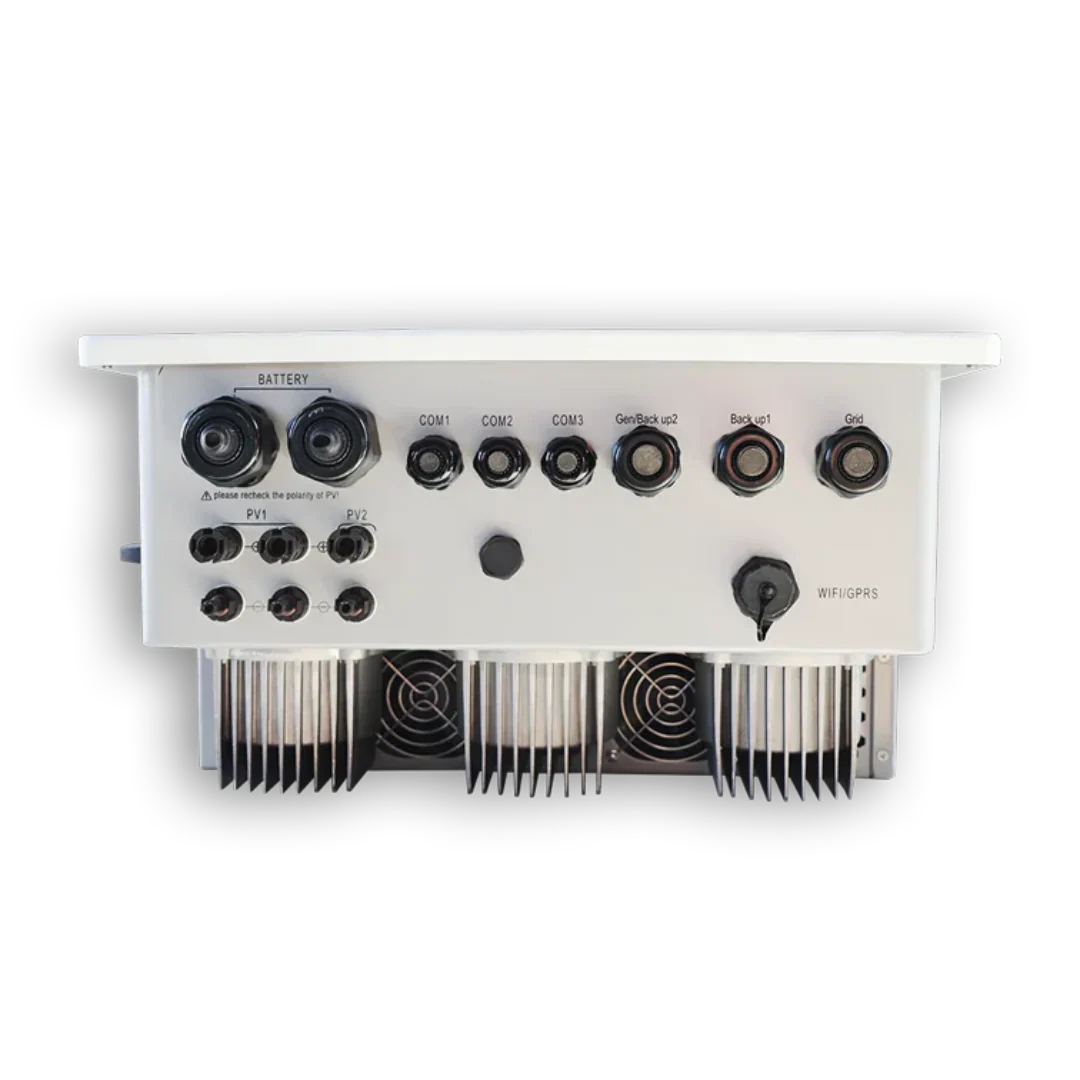 A high-performance hybrid solar inverter designed for large-scale solar energy systems. Equipped with advanced features, it delivers exceptional efficiency, reliability, and versatility for demanding energy requirements.