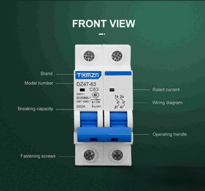 This Tomzn 2P AC MCB Circuit Breaker ensures efficient protection for your electrical circuits, preventing damage caused by overcurrent situations while offering long-lasting and reliable performance.