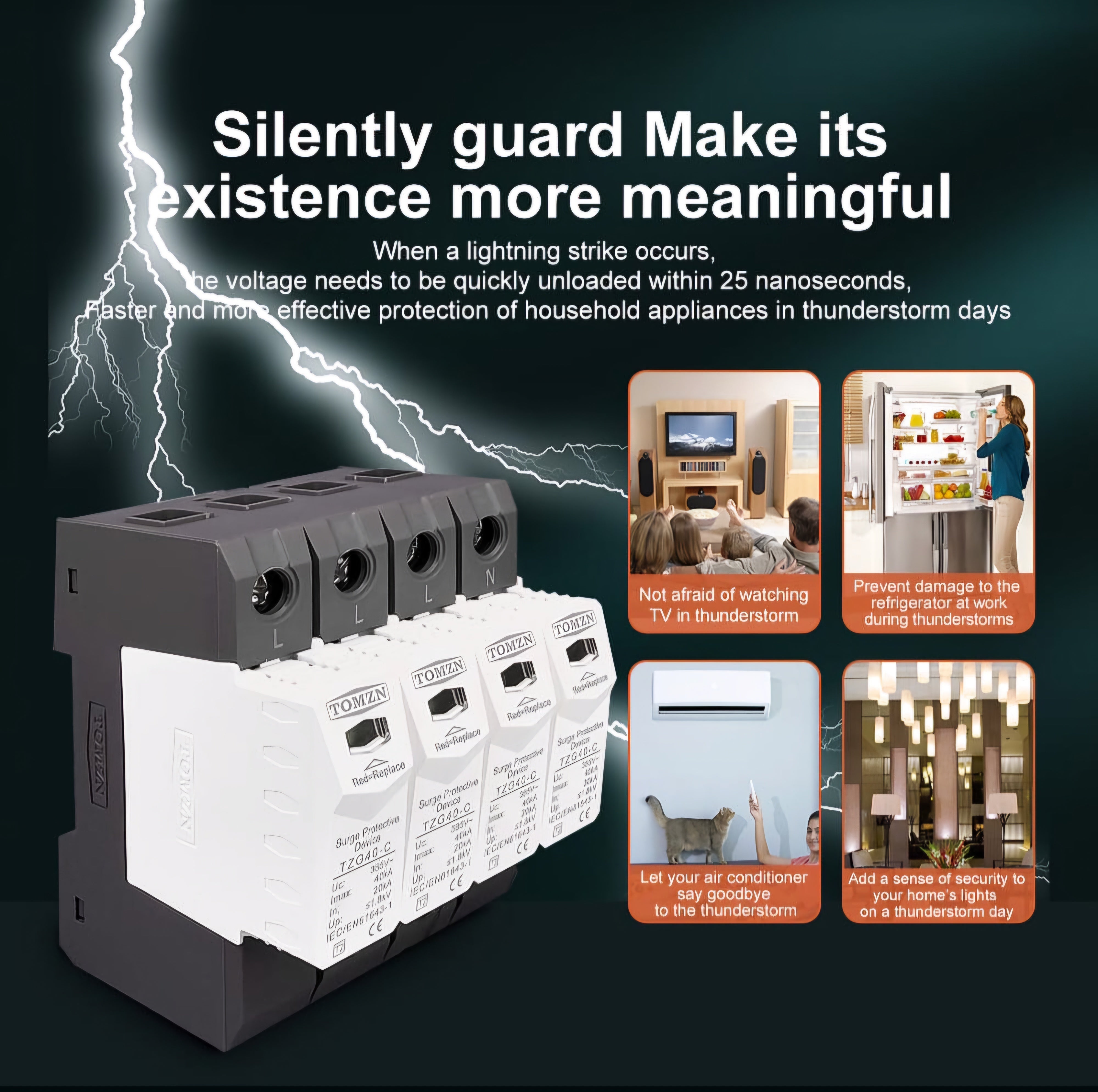 Tomzn TZG40-C AC 4Pole 3 Phase SPD House Surge Protector Device