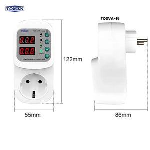 Keep your appliances safe with the Tomzn 16A Socket Voltage Protector. Features over-voltage, under-voltage, and over-current protection, automatic recovery, digital voltage & current display, and easy factory reset for reliable appliance safety.