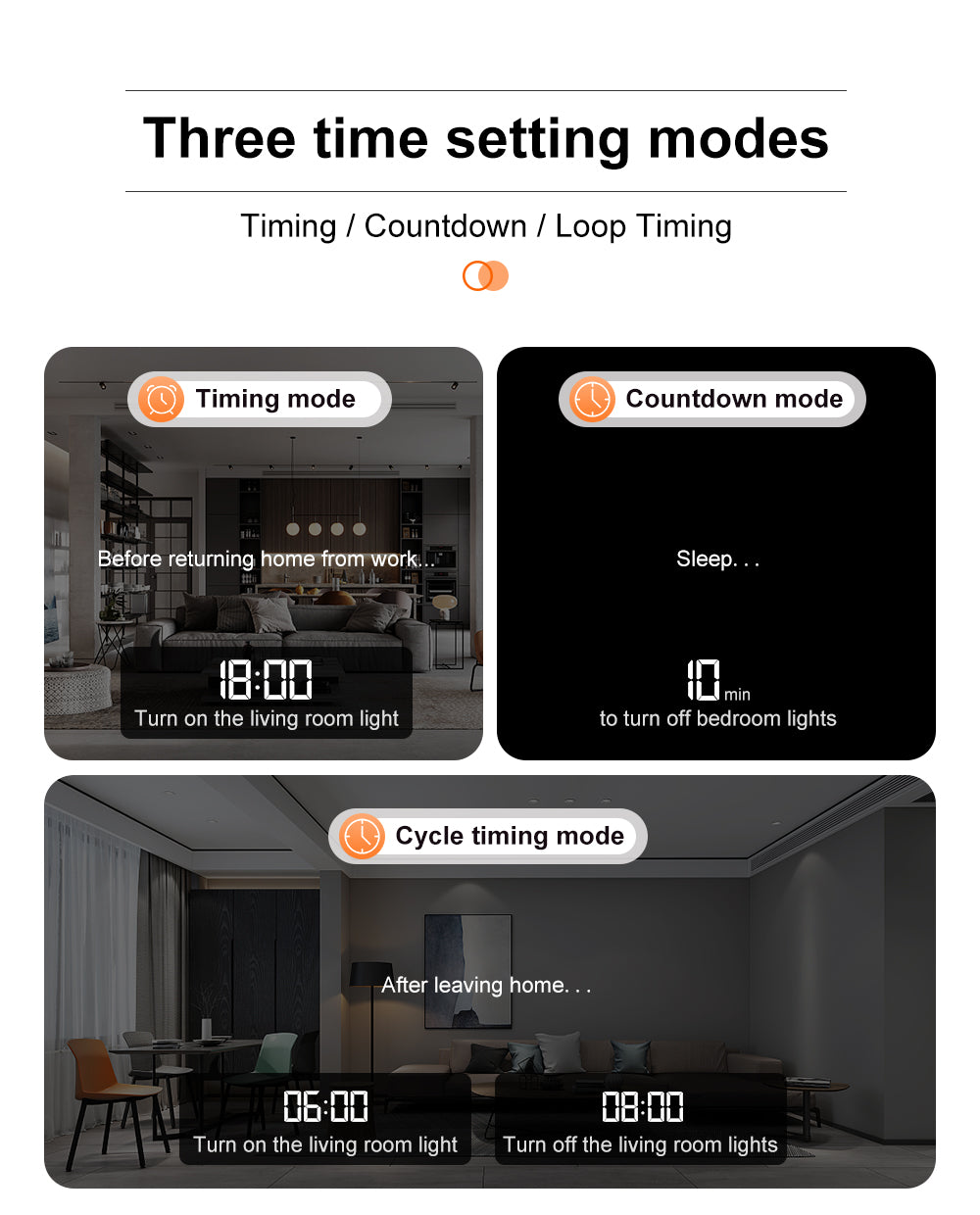 - Scheduling & Timers: Set schedules, timers, or loop timers for automatic on/off operation.