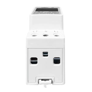 - Voltage (V), Current (A), and Energy (kWh) readings on a single compact unit.