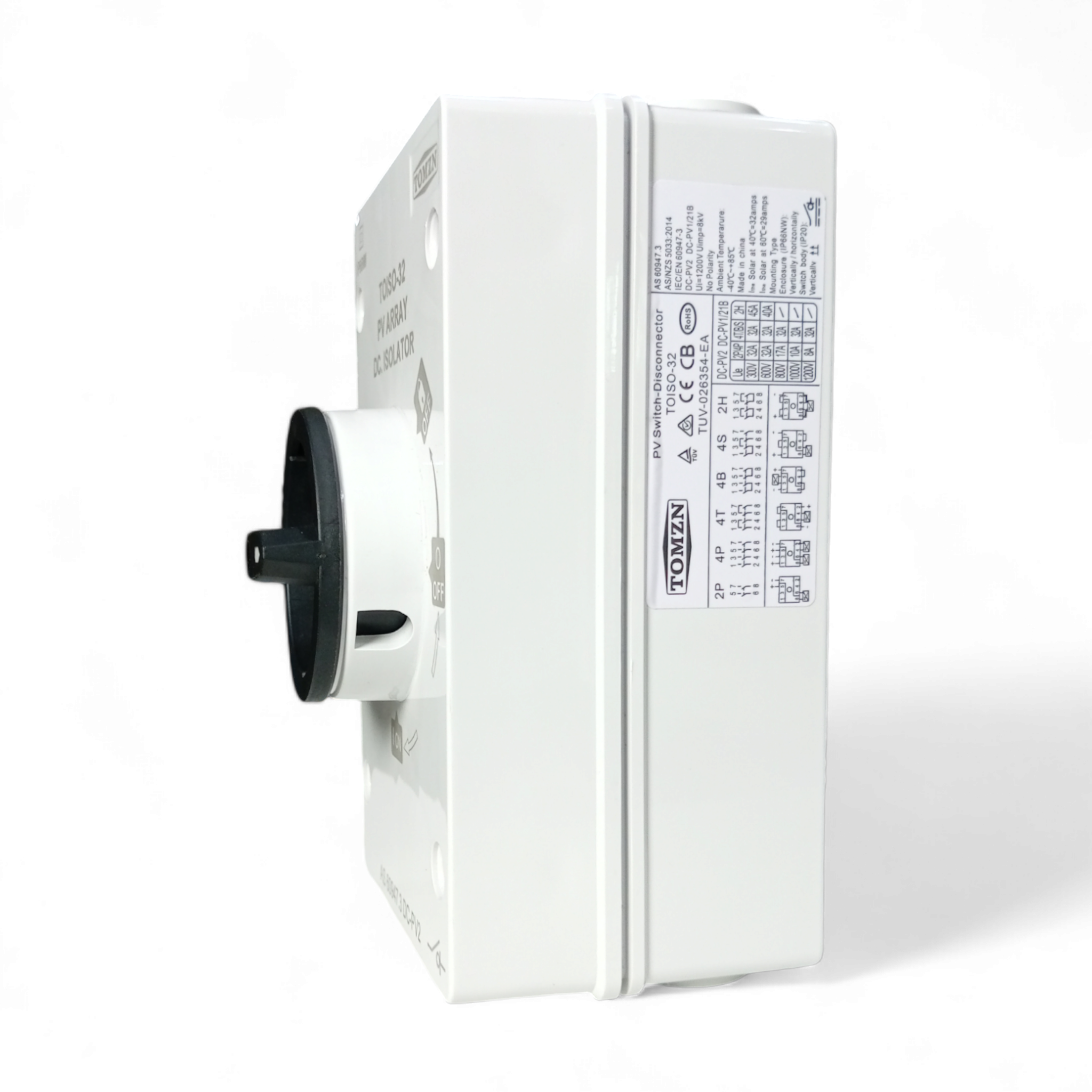 Tomzn TOISO-32 Solar PV Array DC Isolator Switch IP66 Isolator Disconnect Switch
